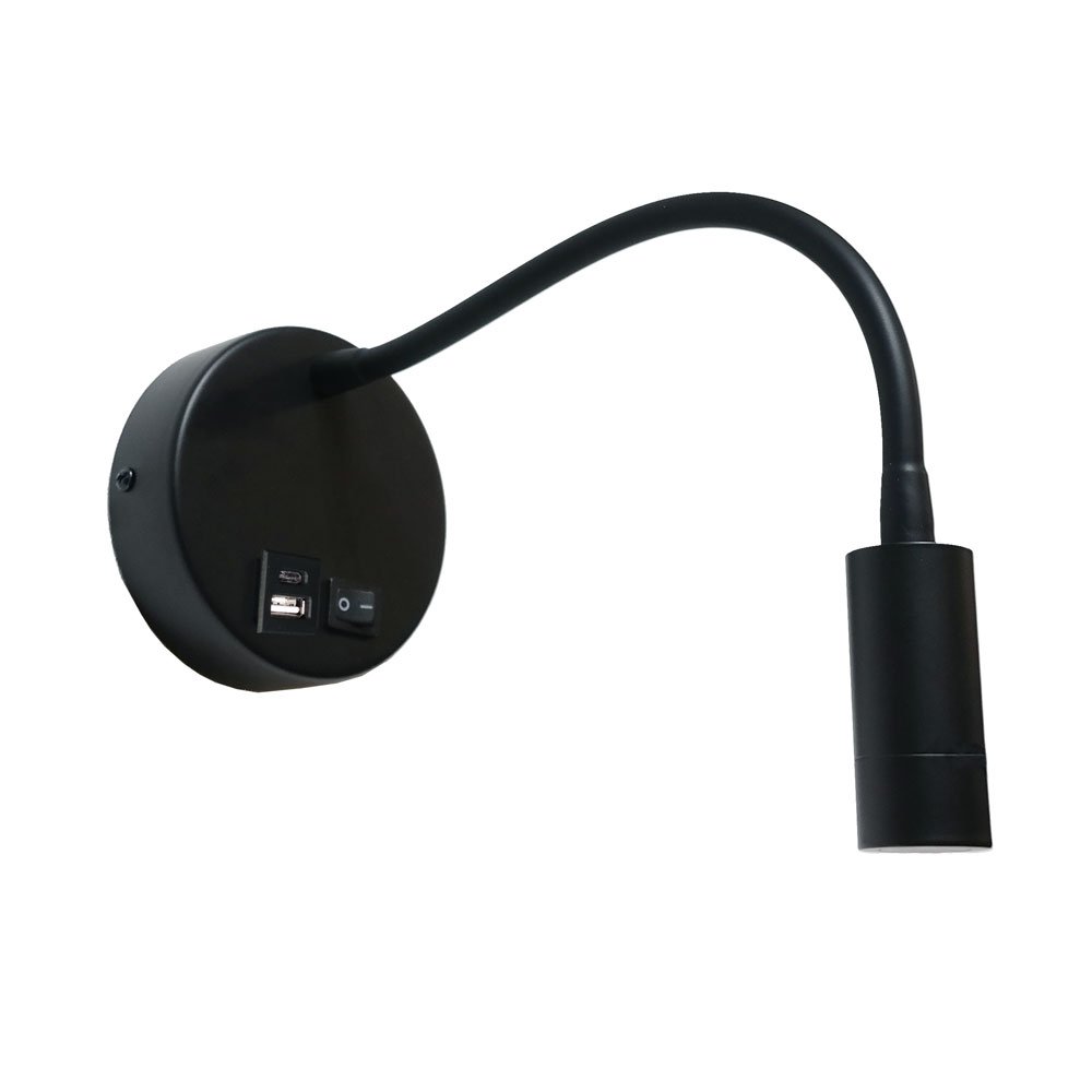 EASY LED-Wandleuchte schwarz mit flexiblem Arm von mondilux