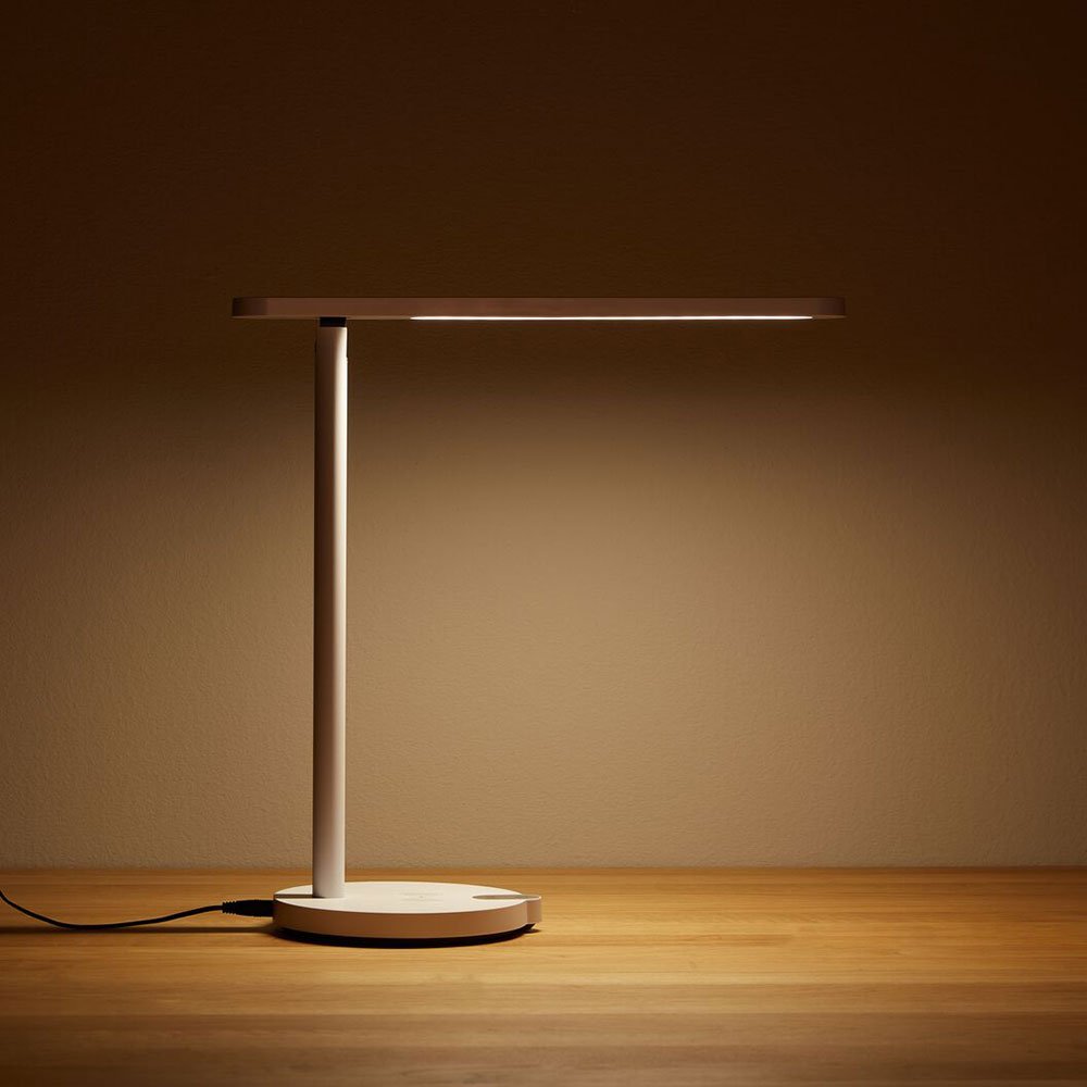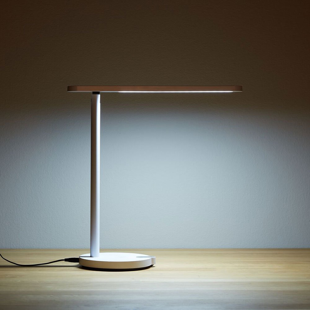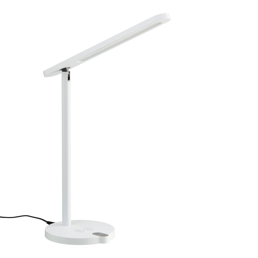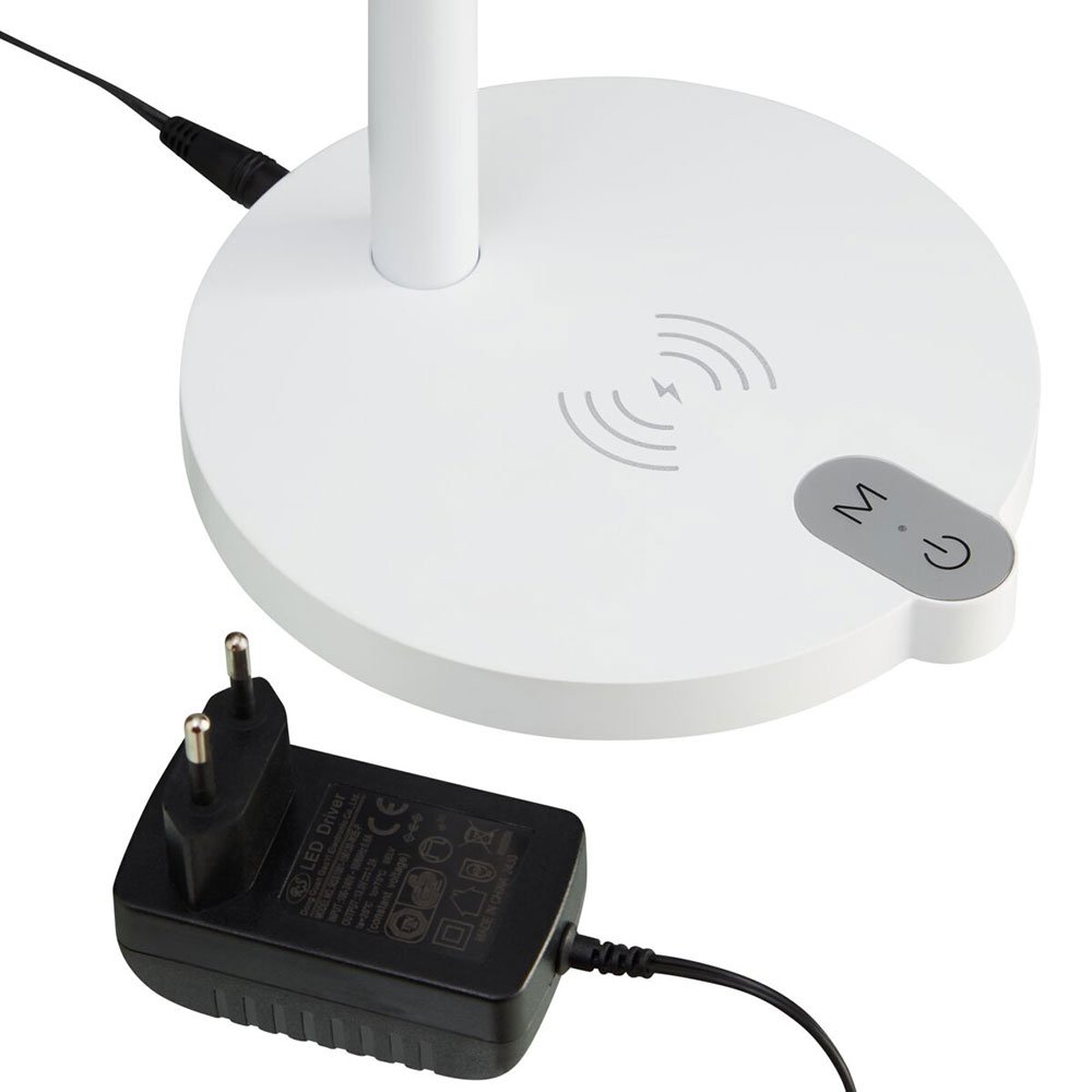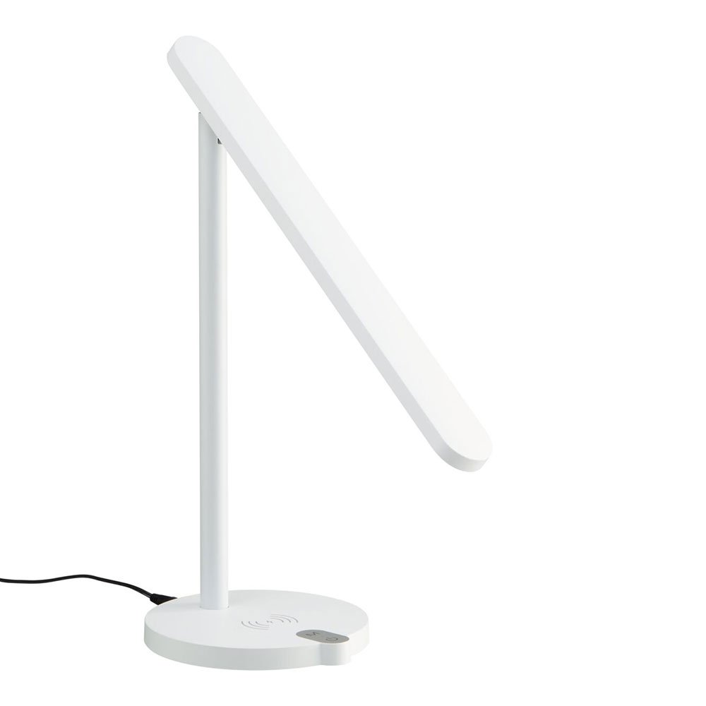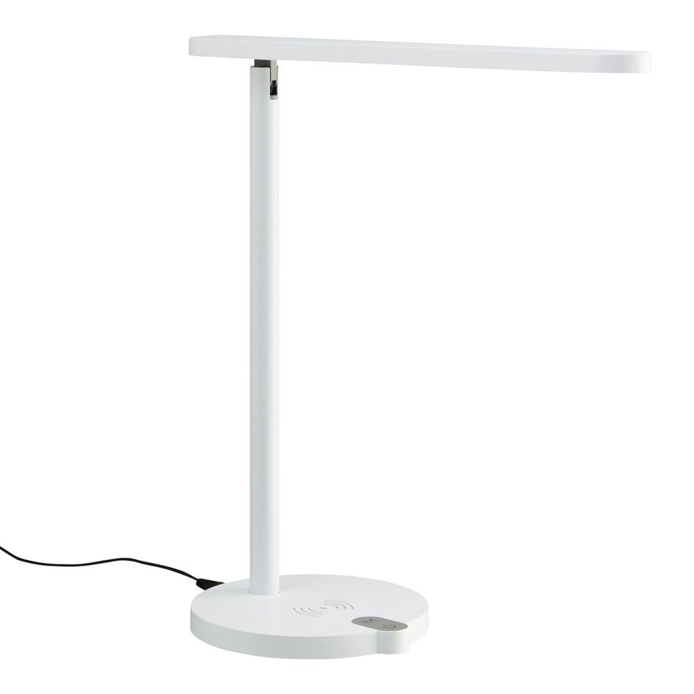 Die dimmbare MIOLA LED-Tischlampe mit dreh- und kippbarem Reflektor hat drei verschiedene Farbtemperaturen und einen praktischen Wireless Charger für Ihr Handy.