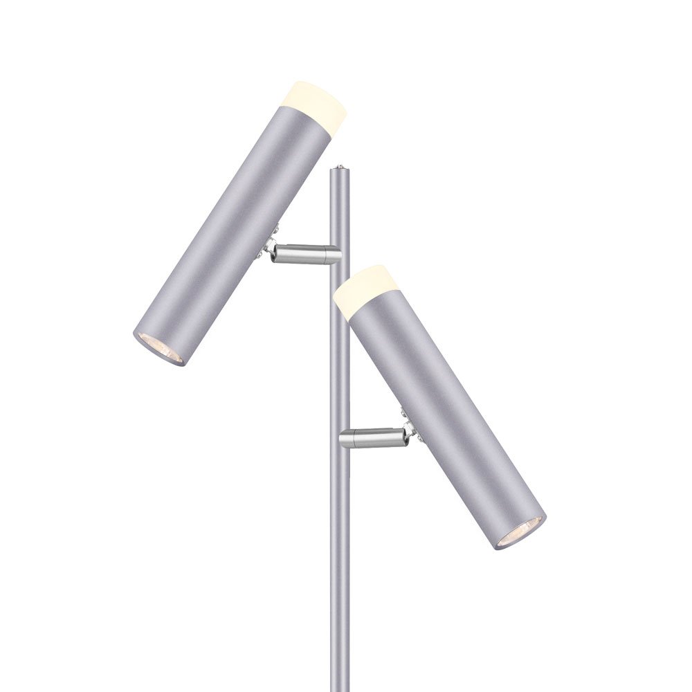 Dimmbare LED-Leseleuchte SORIA mit dreh- und schwenkbaren Reflektoren. Backlights mit weissen Acrylabdeckungen. Zeitloses und schlichtes Design in silber-matt.