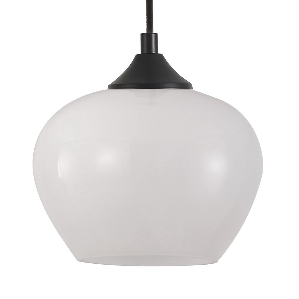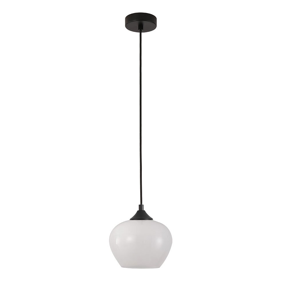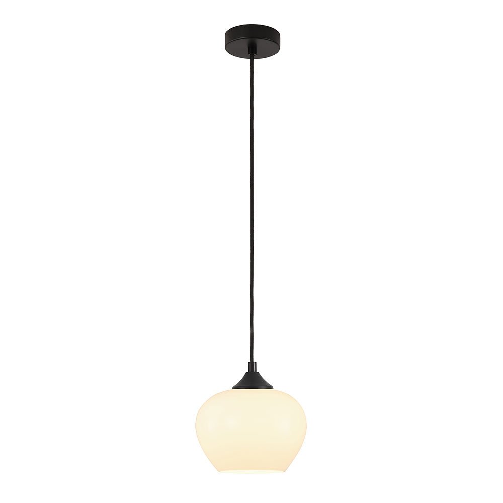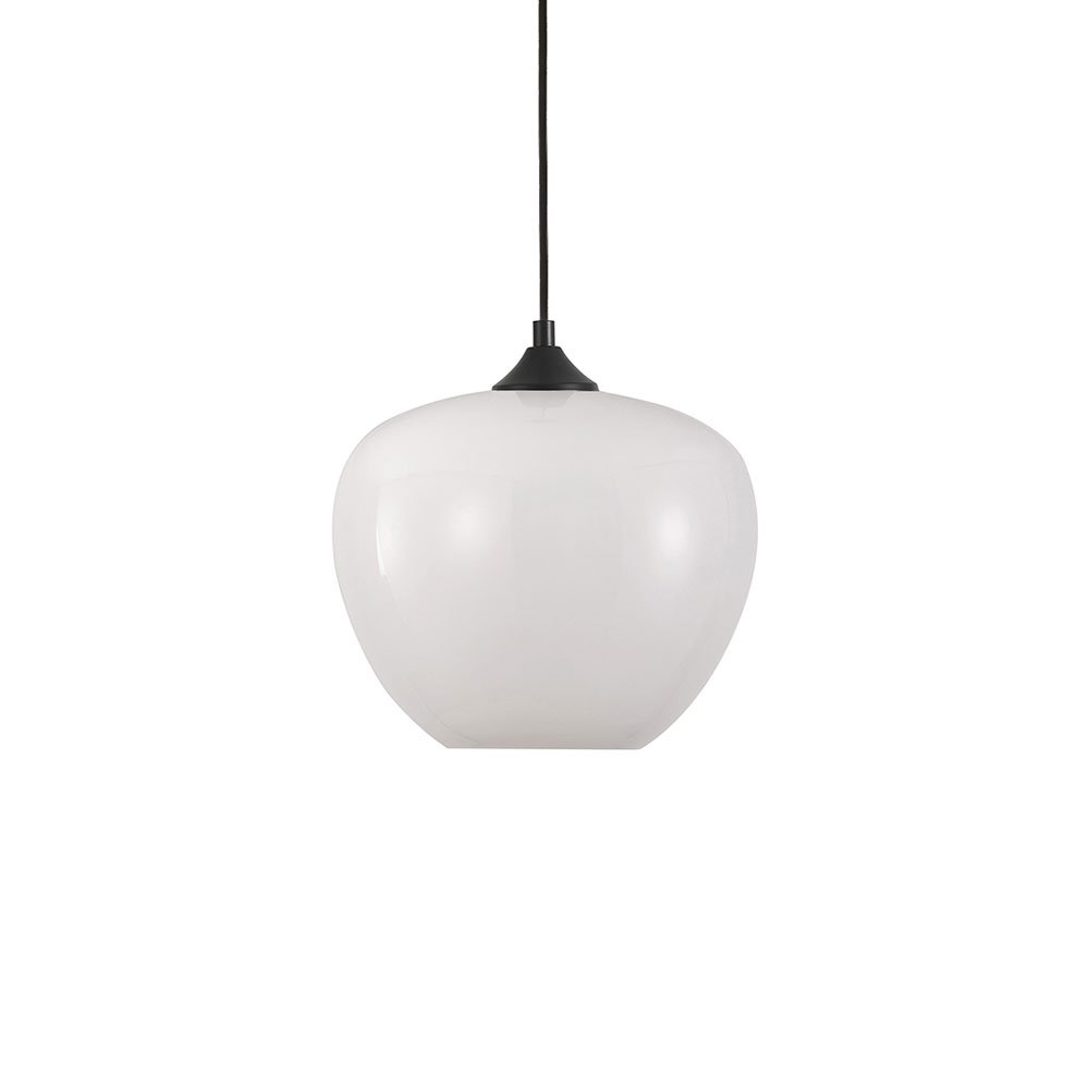 Elegantes Design mit weissem Glas und schwarzem Textilkabel.