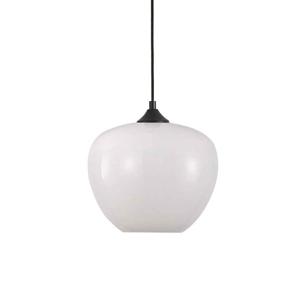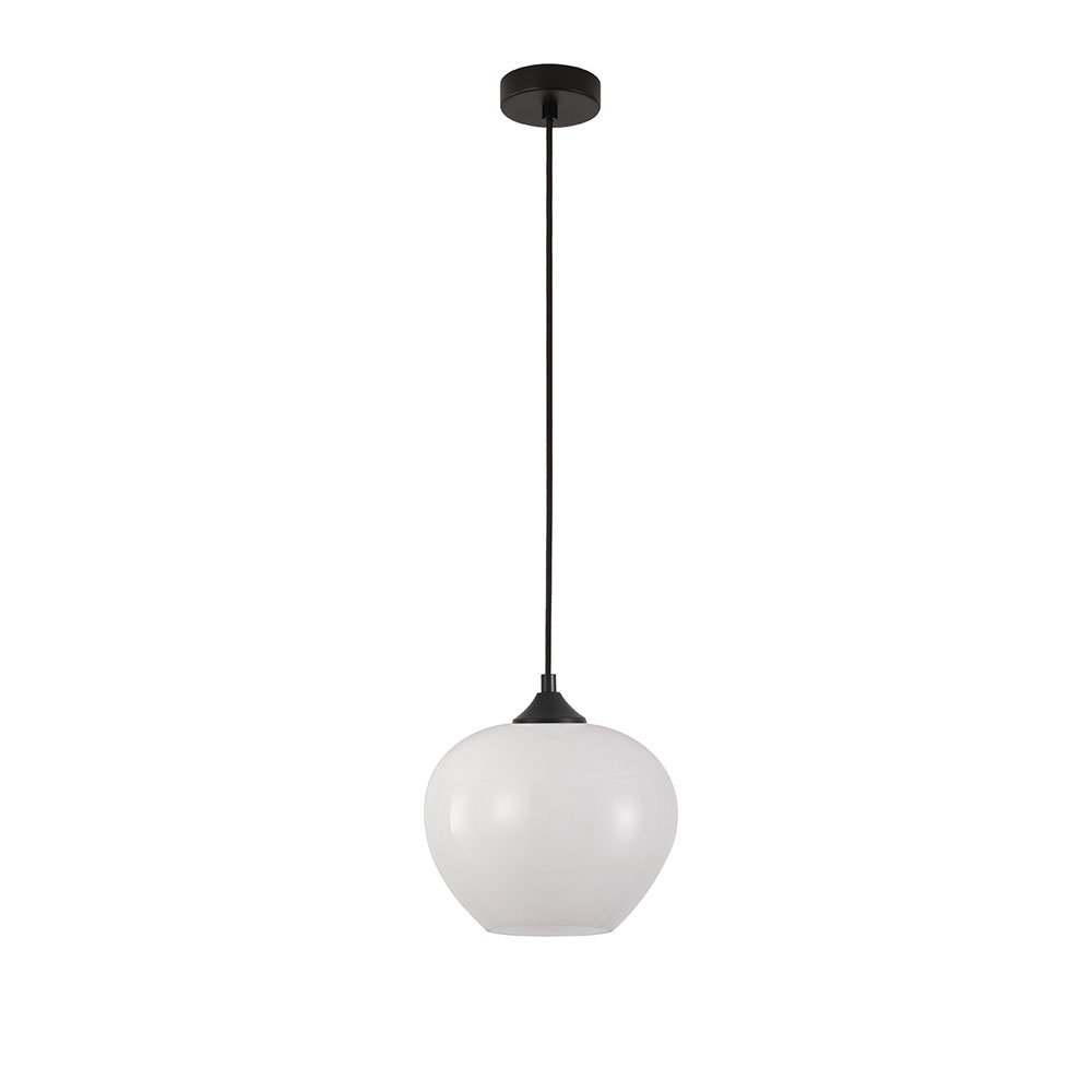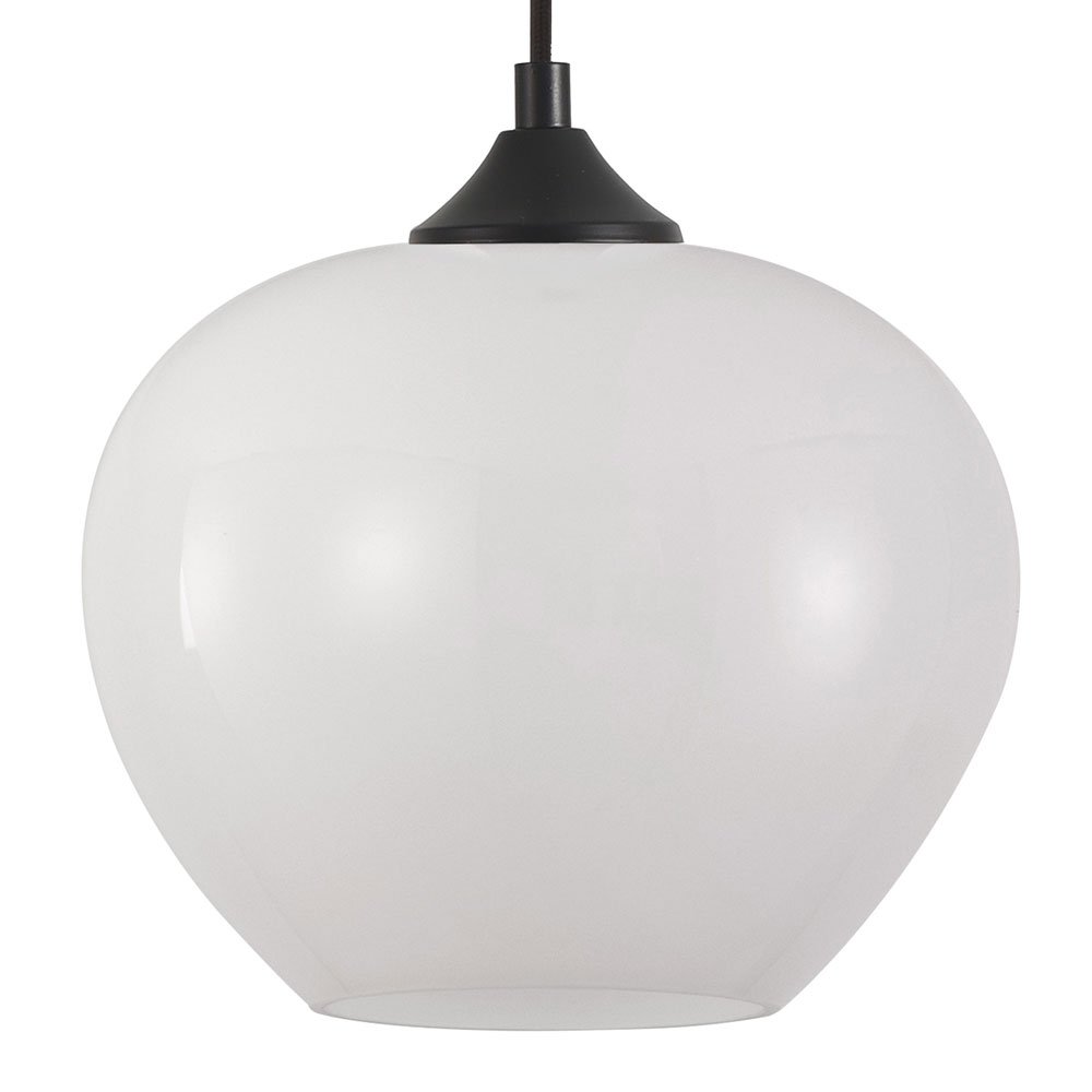 Elegantes Design mit weissem Glas und schwarzem Textilkabel.